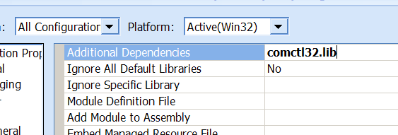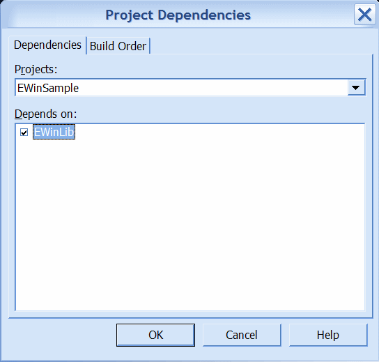 | Add comctl32.lib to the link line. Other ewin functionality may require other os libs as well, such as wsock32.lib, winmm.lib, comdlg32.lib, etc. | ![]() |